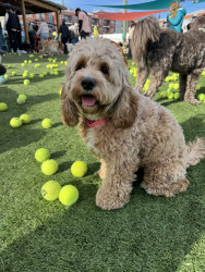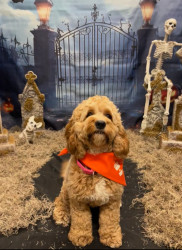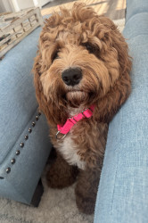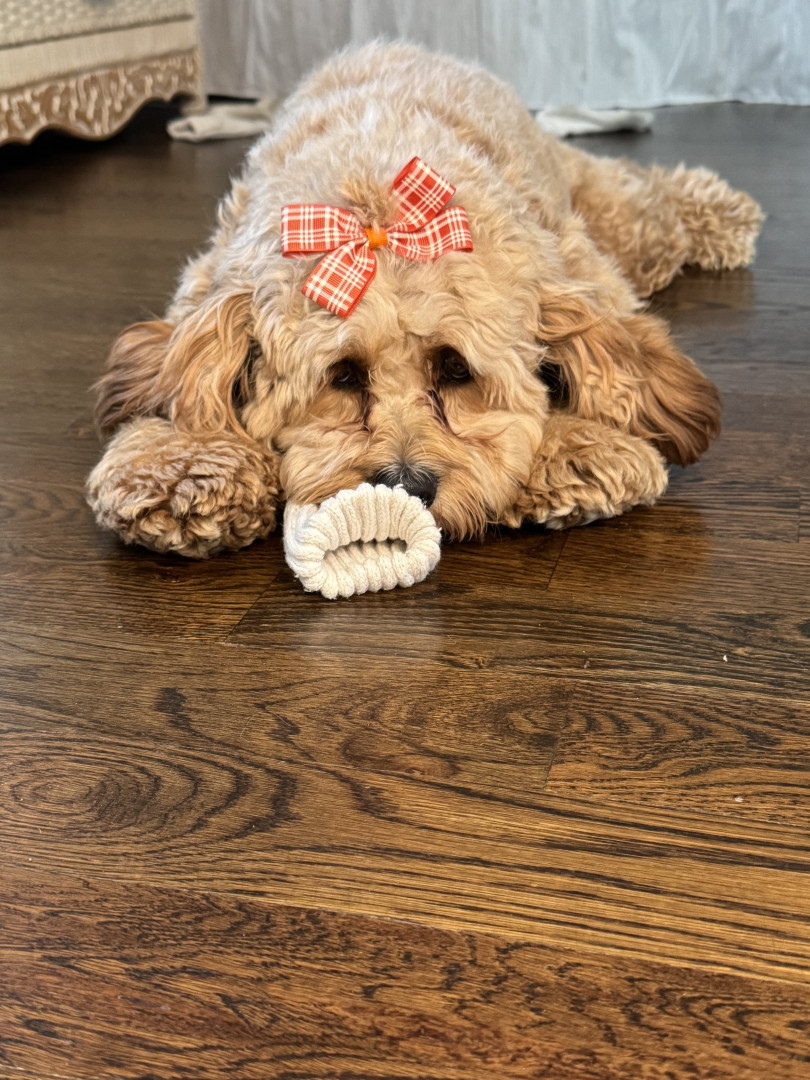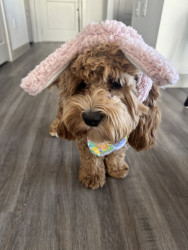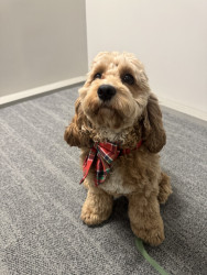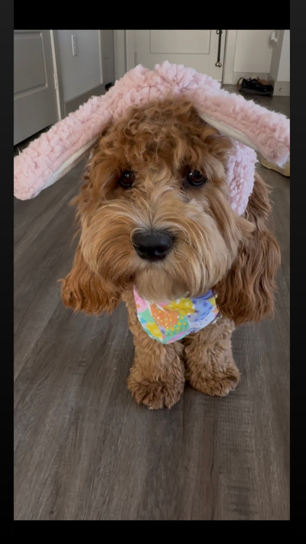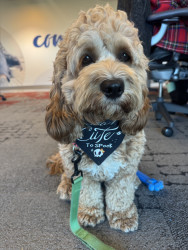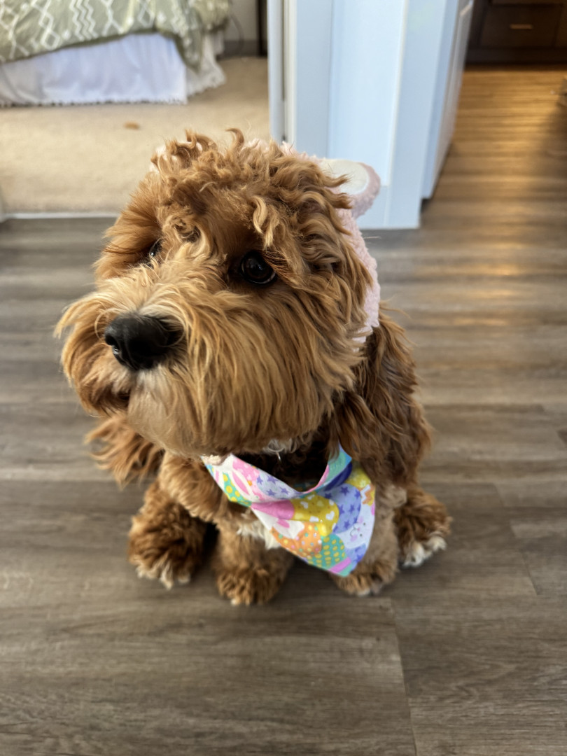 Lottie has a heart of gold. She’s a smart, playful, and sweet 1.5 year old cockapoo. She loves to get dressed up and go to work with me.