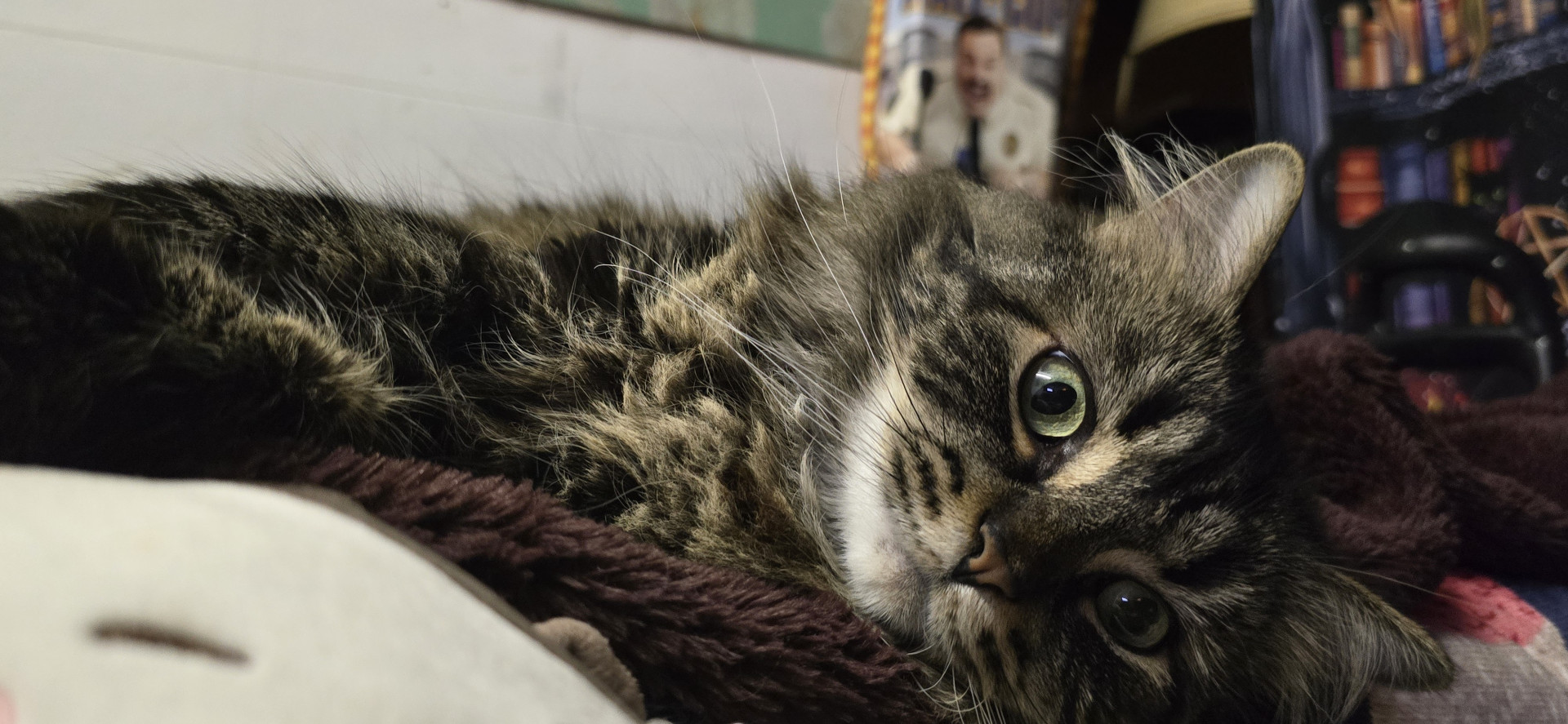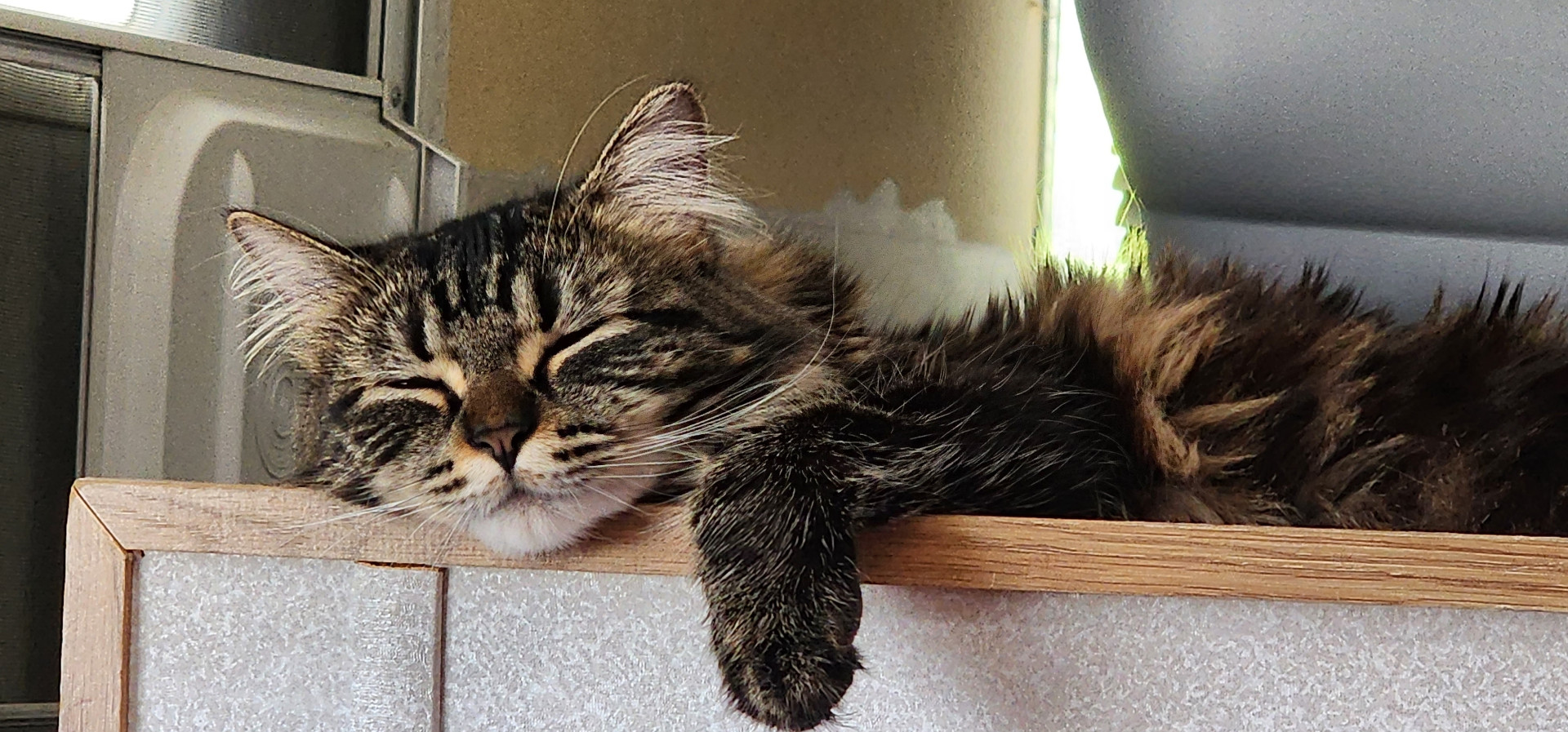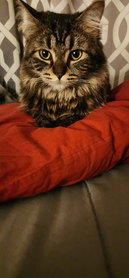 She is a ball of fur she loves to nap and play and loves going on adventures in her Backpack and spending time cuddling and her fishie treat