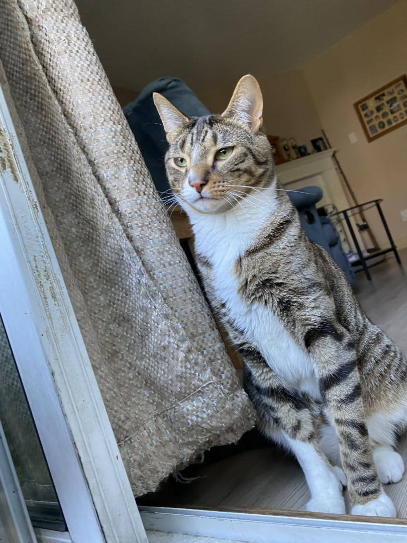Lou is an 8 year old bengal x orange tabby. He is very adventurous and loves food.