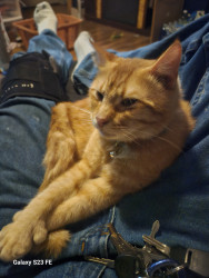 Lou is a orange polydactyl hes 3 years old. Loves to lay in my lap and sleep. He plays with his son. He loves to sleep beside me in bed.