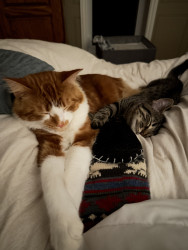 Lou is an extremely curious and cuddly cat. He loves sleeping with his favorite humans, just as he loves snuggling up with his sister