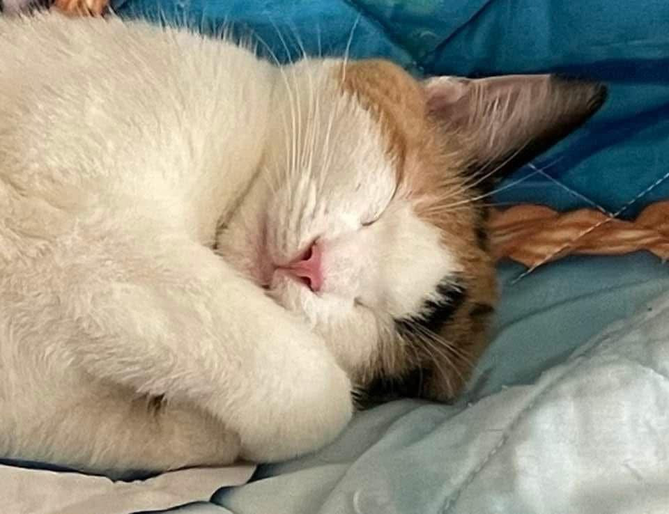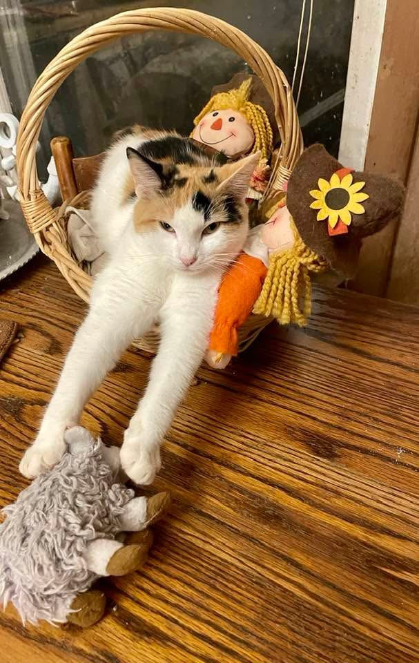 LouCinda was left at our house by someone. We don’t know who put her out. My oldest cat (GG) welcomed her with open arms! GG is 15! LouCinda is very loving and loves all other cats!