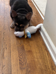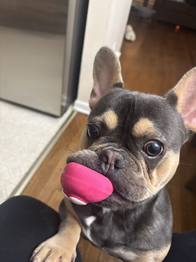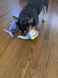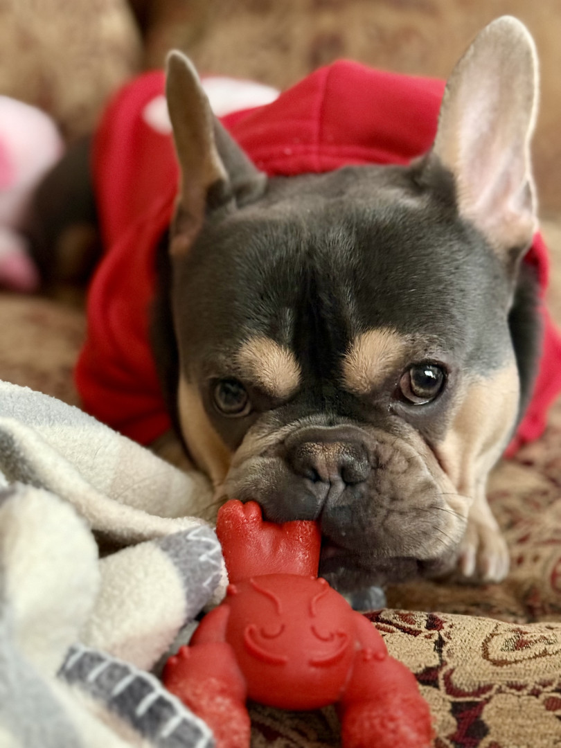 Receive Text UpdatesHe loves his chew toys, especially his red lobster🦞 Nylabone