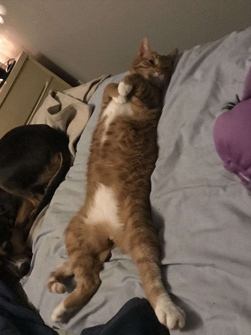 Louie’s affection and unique qualities makes us question if he’s truly a cat. We seem to all believe he is his own entity. He makes cat hater to cat lovers. We are usually always Laughing as he steals our food, inspects everything that comes in the house. He will lay on a package if he doesn’t want it opened yet. Had a guest at our house and Louie was playing with her hair as she showered. There is always a Louie story in this house. We are always asked what is the latest Louie story.
