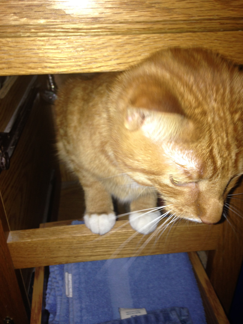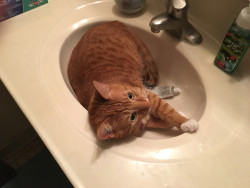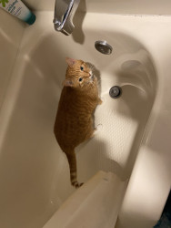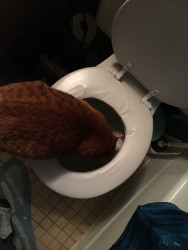 Louie is a unique cat. He takes showers with us. If we don’t put the toilet seat down he plays in the toilet. He plays in the water dishes.