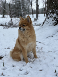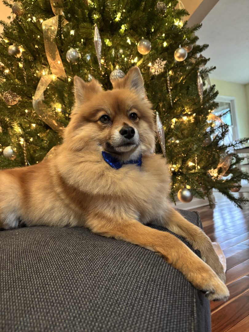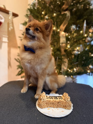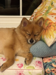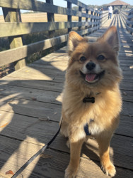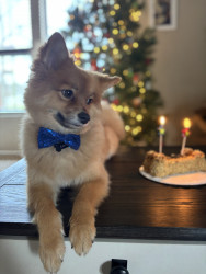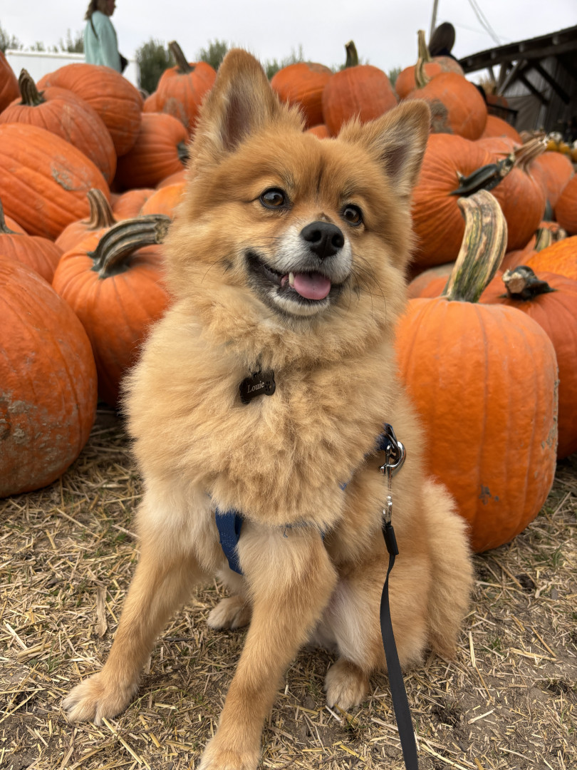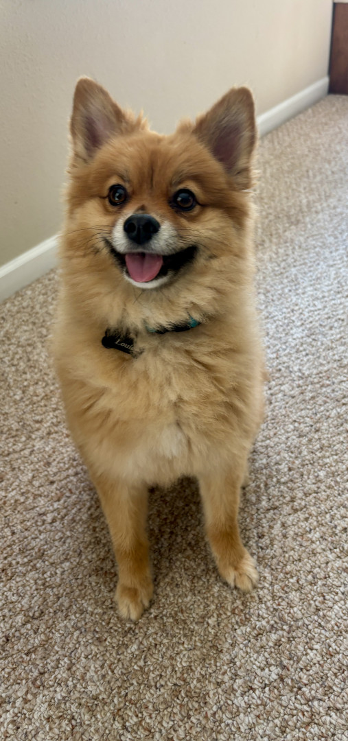 Louie is a sweet 3 yo Pomeranian mix. We adopted him when he was 6 mo. He is very friendly and loves to play, sunbathe, and chase squirrels.