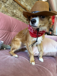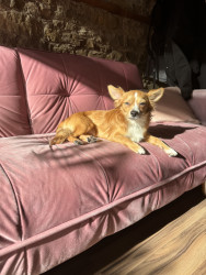 Meet this little world-traveling heart-stealer—a pint-sized explorer with a big personality. With his warm caramel coat, bright white blaze,