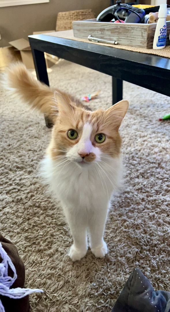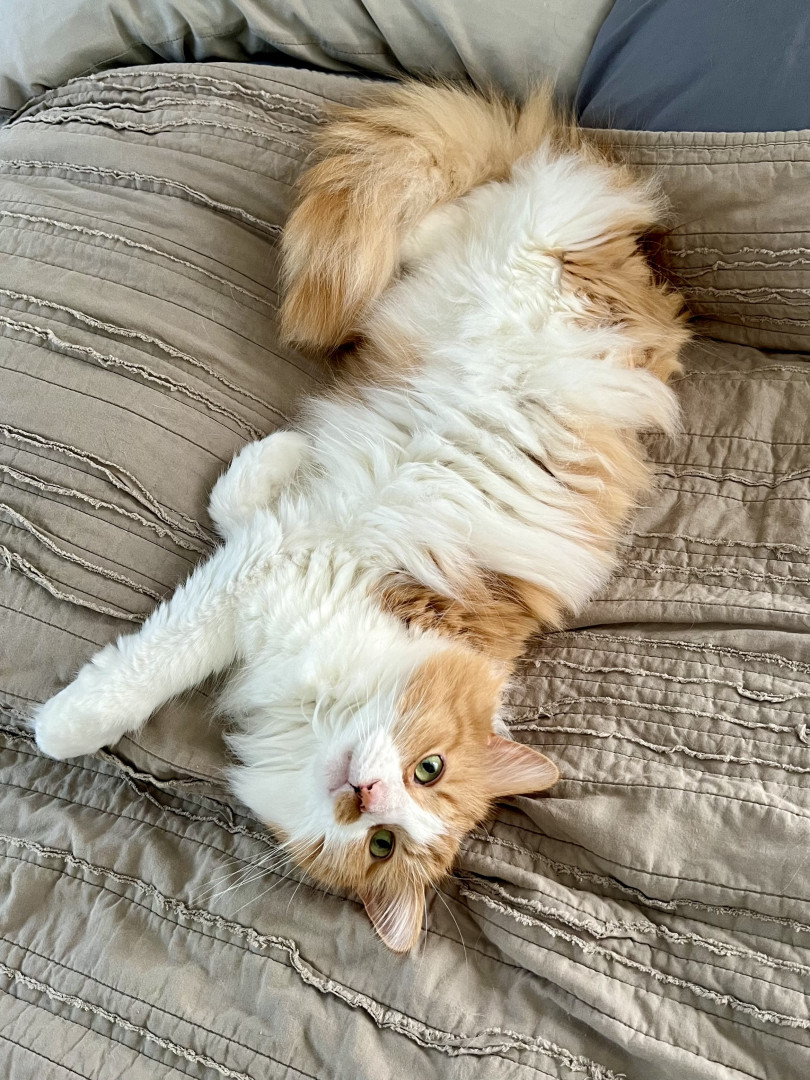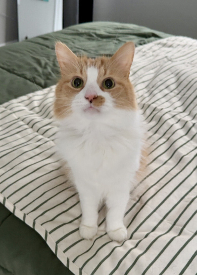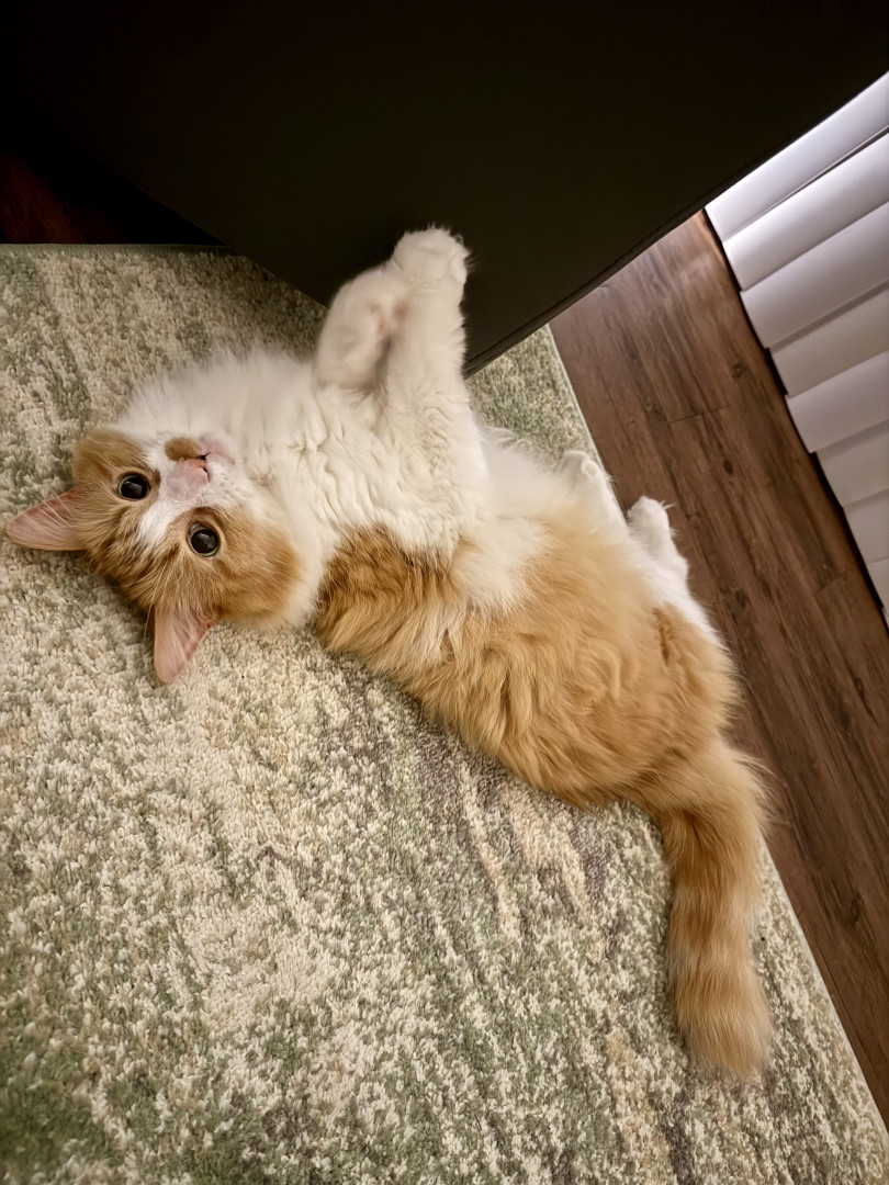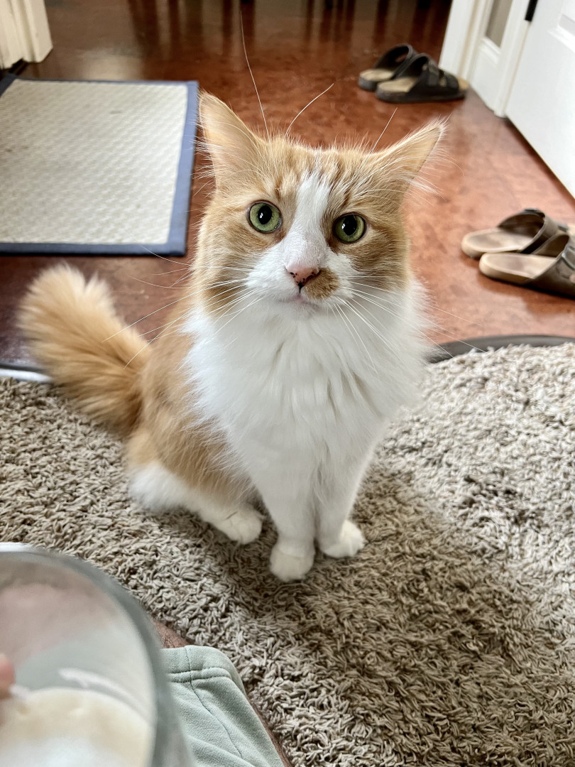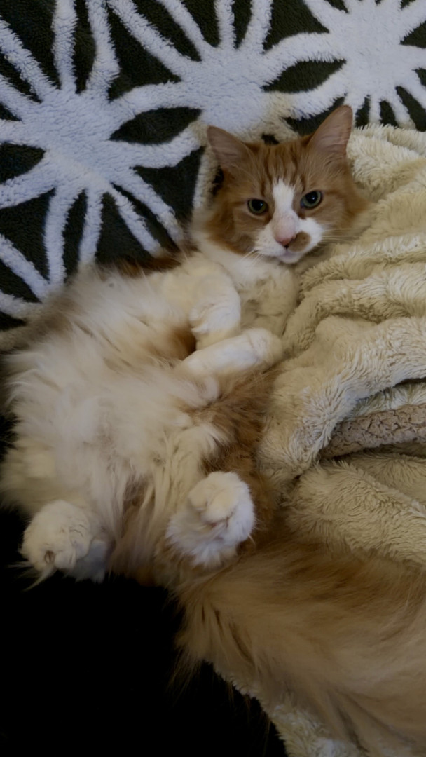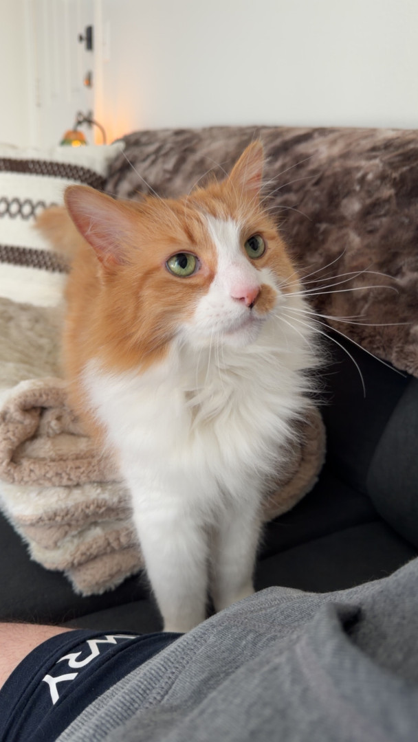 Louis is an affectionate orange chaos gremlin fueled by curiosity, zoomies, and zero self-control—but somehow still a 12 year old baby.