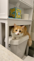 Louis operates with the confidence of a cat who has never experienced consequences. He’s equal parts fearless explorer, professional troublemaker, and affectionate cuddle bug—often all within the same five minutes. His orange brain cell clocks in late, but his personality always shows up early.