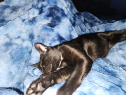 Lucifer is a new addition to our family. He's very friendly, yet onery. He thinks he's very stealthy. He likes to climb and play ha