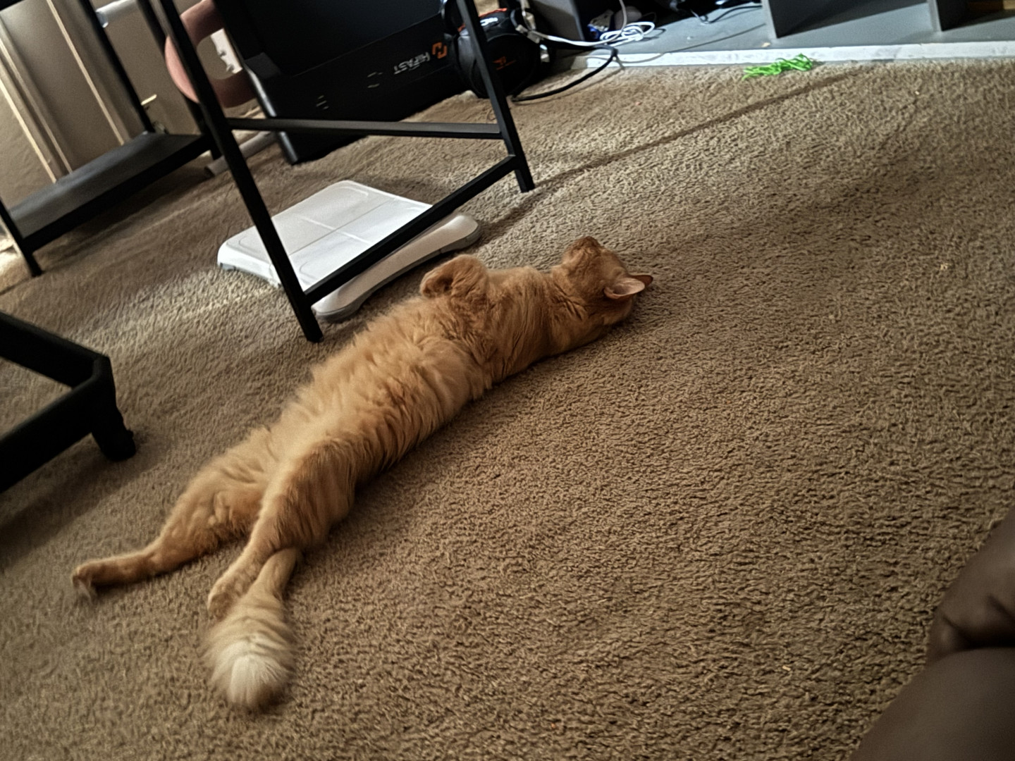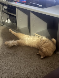 The way he lays down in relaxing sleeping positions he sometimes lays like a dog on his stomach