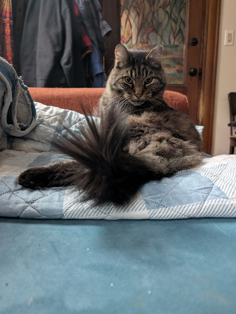 Lucky is a sweetheart, smart, curious playful, likes snuggle, he's 13 plus, has a Cat friend named Caroline, loves to sleep in a Sun spo