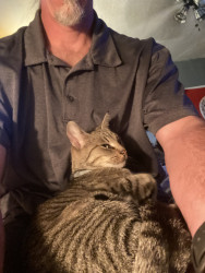 Sweet little girl kitty loves her human dad lol