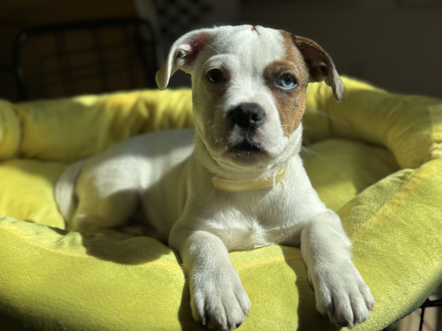 Lucky is a mixed pitbull with a shitzu.. he was born on 7/11 . Lucky is just the most playful loving caring pup with everyone loves attentio