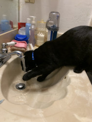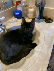 Lucky is a rescue (along with his sister Luna) he loves laying in the bathroom sink waiting for me to turn the water on