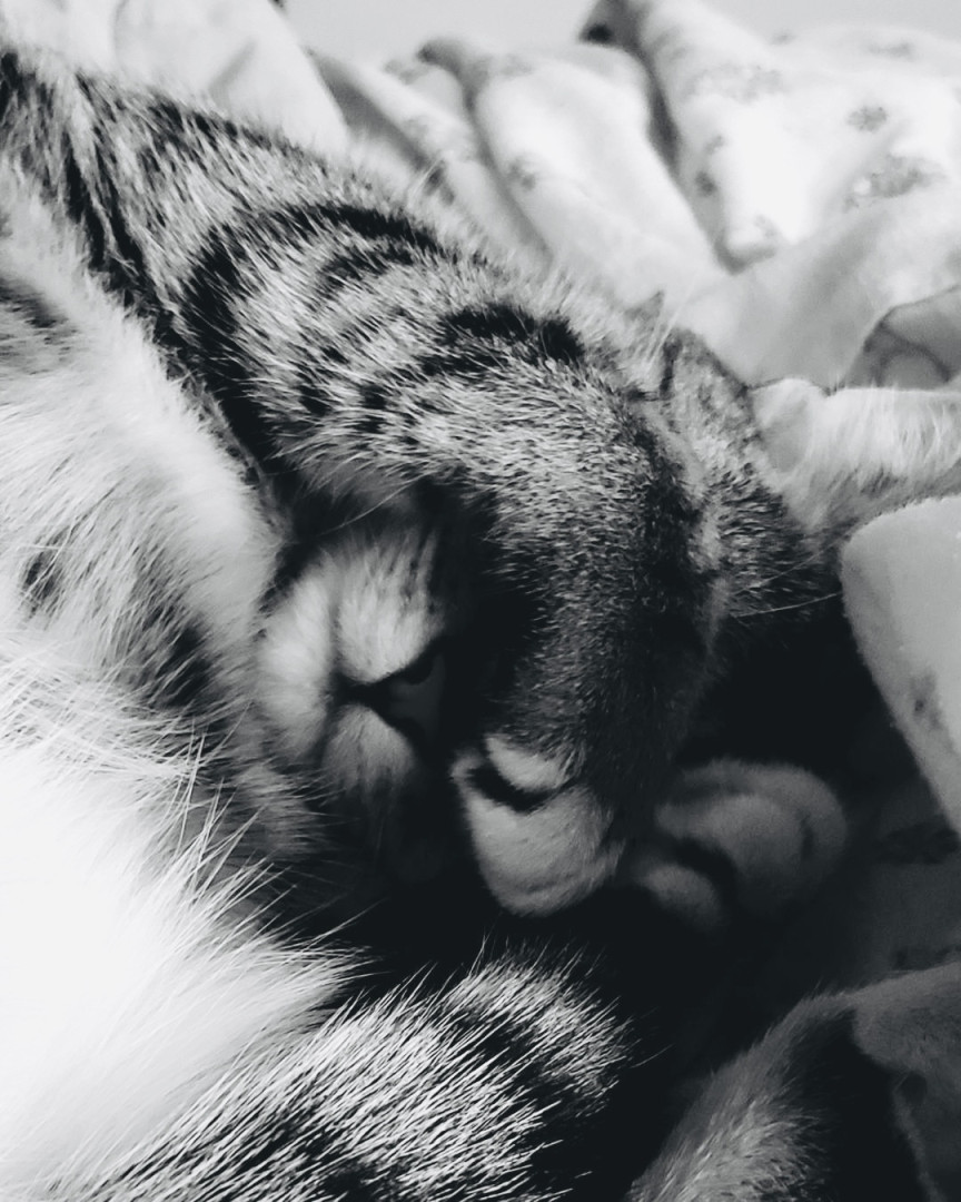 Lucy’s unique quality is sleeping like a diva one paw over her eyes, as if the lights are too bright and the world is too loud. She naps with attitude. She’s basically a furry celebrity, avoiding the paparazzi.