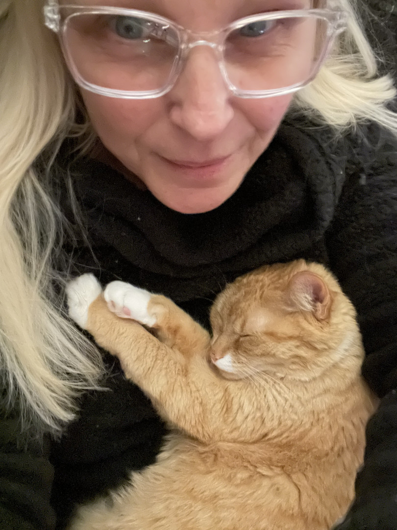 She's a small 10lbs and will climb on me demanding cuddles the minute I sit down. I am her chosen human and she's been such a calming presence in my life. Who rescued who?
