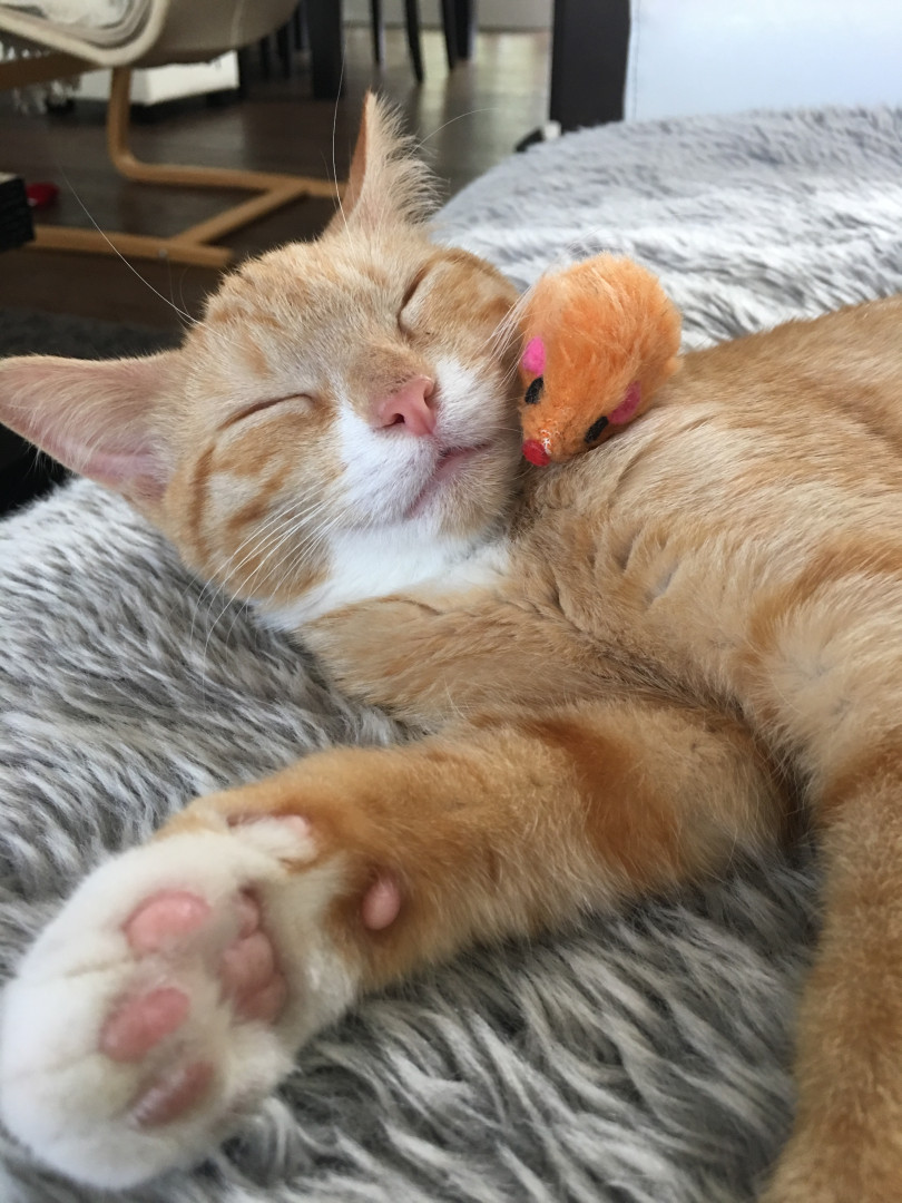 Learn Moreher favourite toy is her catnip banana or she will play with a Q-tip flipping it throughout the house. She loves tuna flavoured treats.