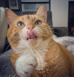 Hi 👋 Meet Lucy, a female orange tabby who was rescued as a wee kitten. She's now 9 and has a staff of 2 humans and another feline.