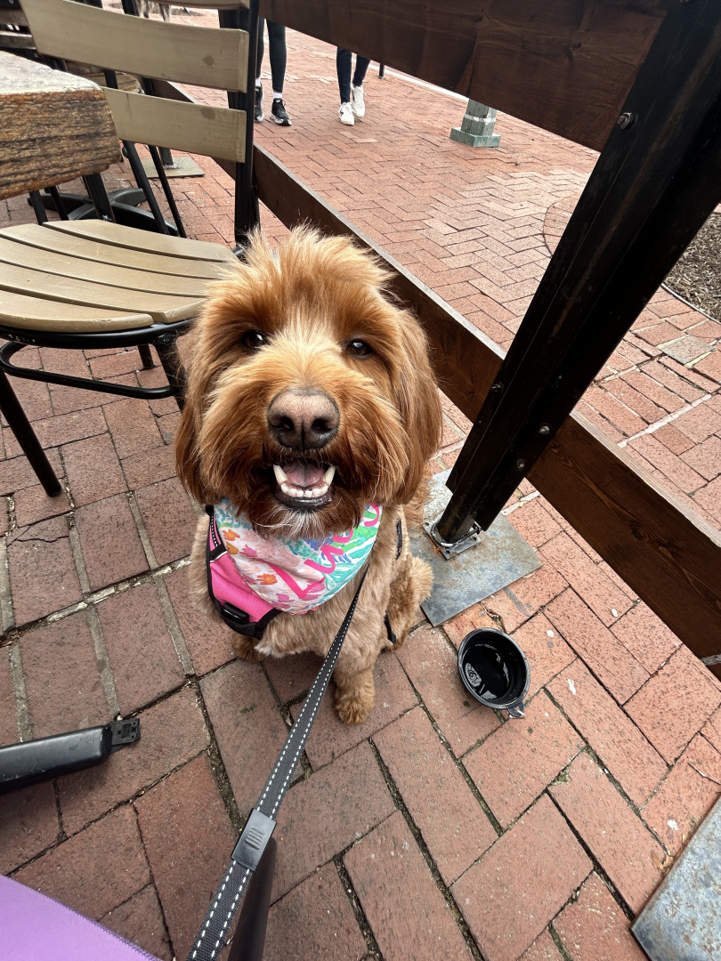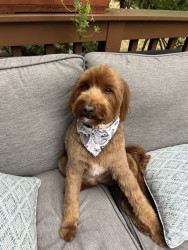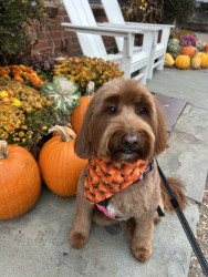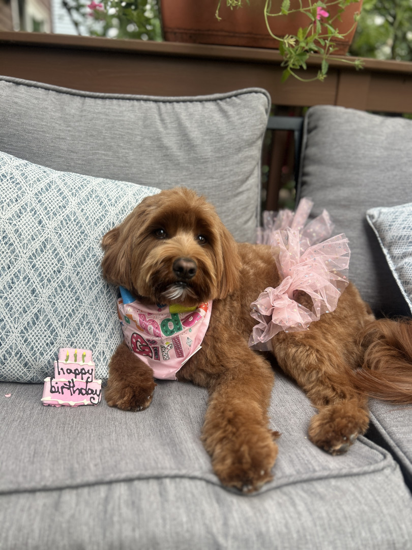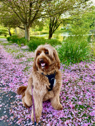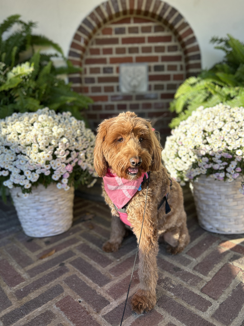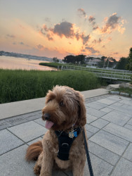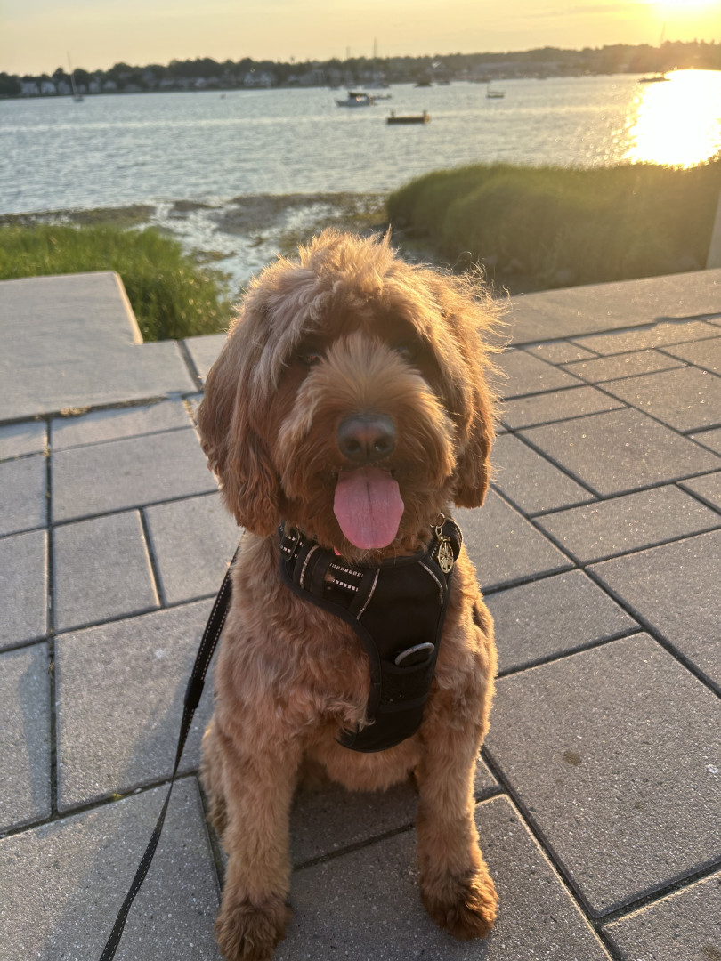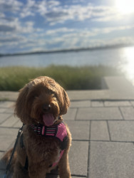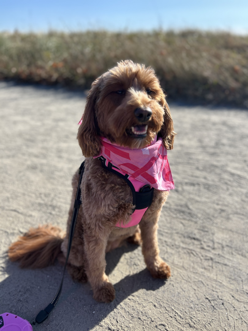 Lucy is a lovable four-year-old Goldendoodle who loves posing for pictures, enjoying beach walks with her friends, and going for car rides.