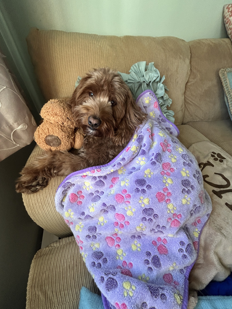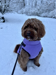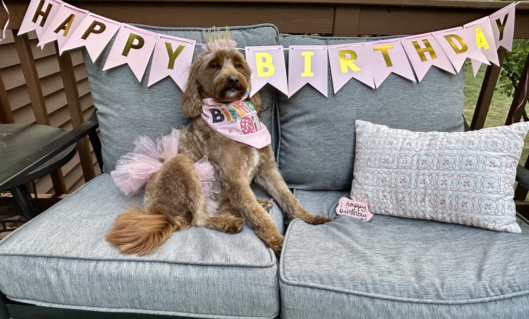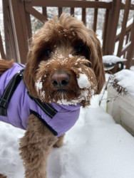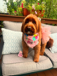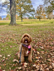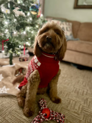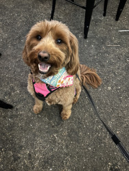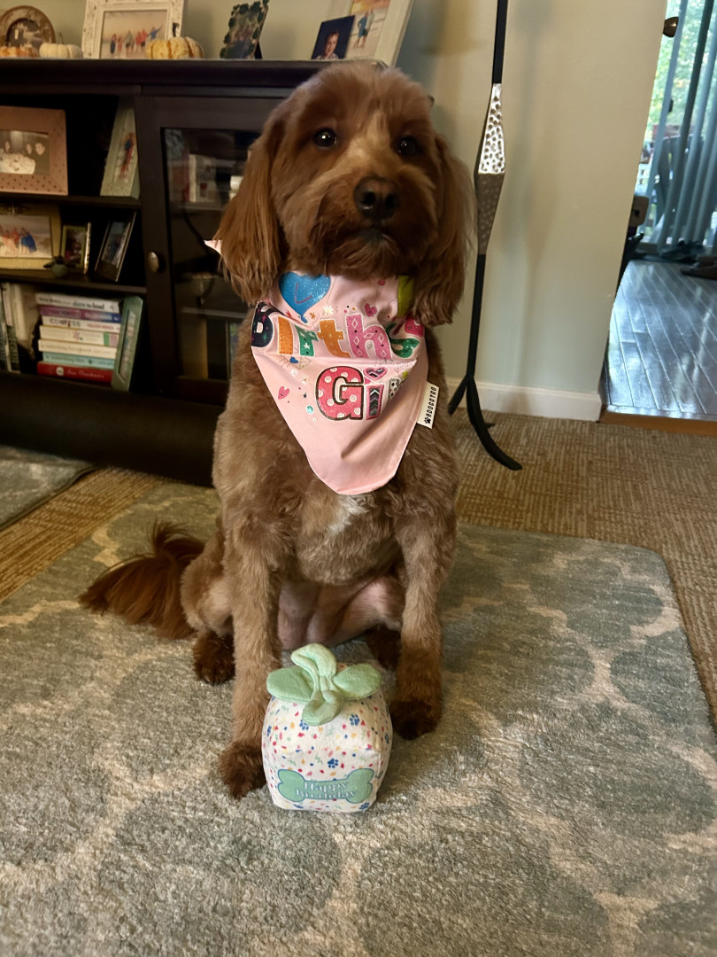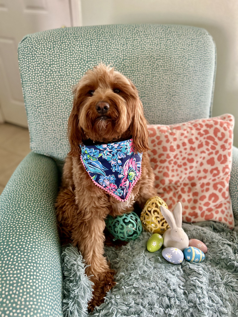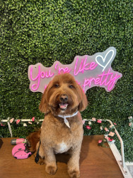 Lucy is a lovable four-year-old Goldendoodle who loves posing for pictures, enjoying beach walks with her friends, and going for car rides.