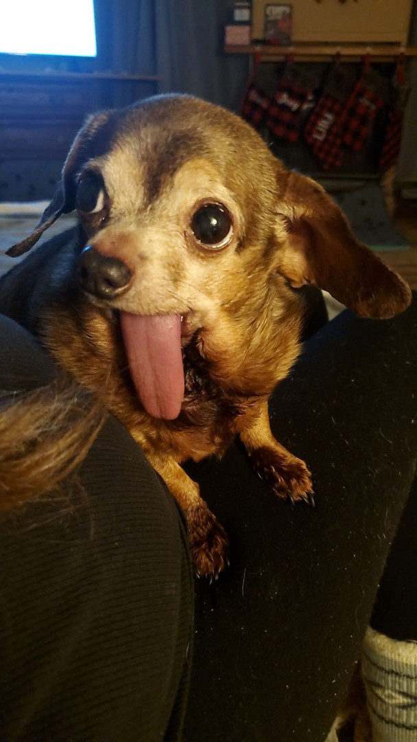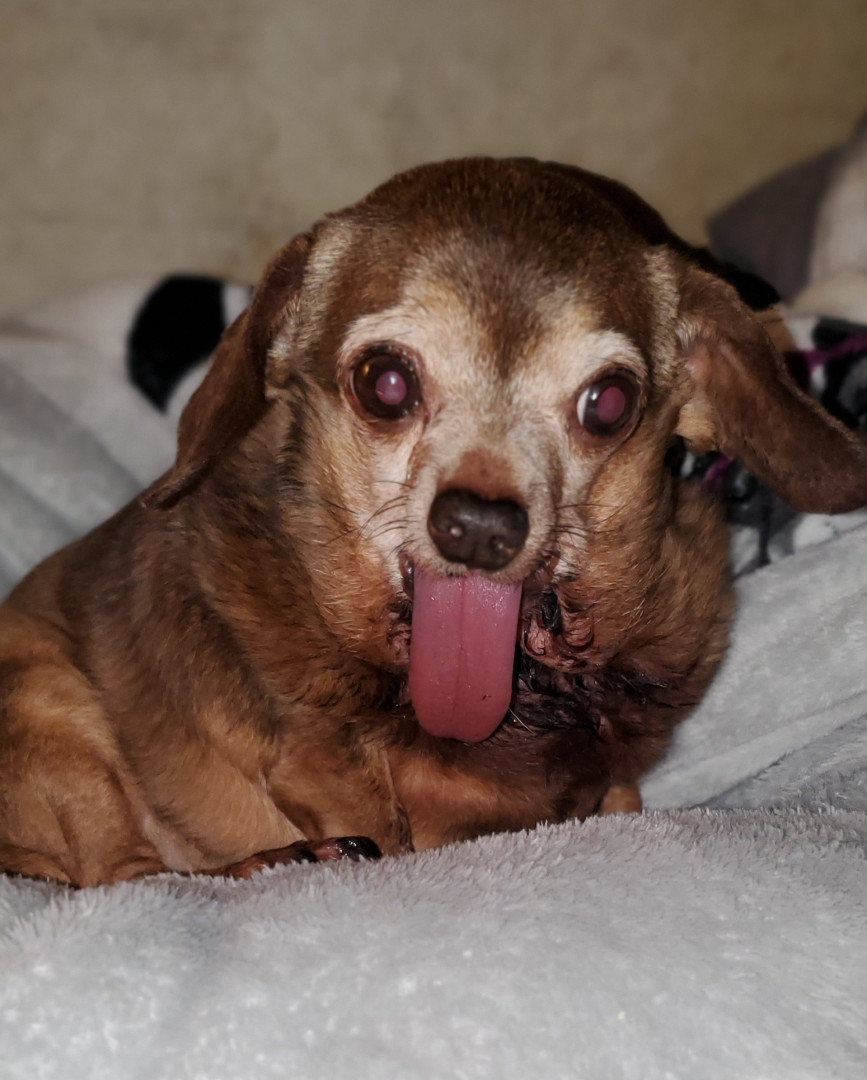 I think lucy deserves to be America's favorite dog because she has had the worst past life but yet she is ready to make everyone smile. You see she was rescued in FL from a horrible hoarding situation (back yard breeder) then this rescue adopted her out to yet another person who abused her. When she came to my rescue she was so emicated, had no hair and was in rough shape. She will always be by my side as my spirit dog living her best life.