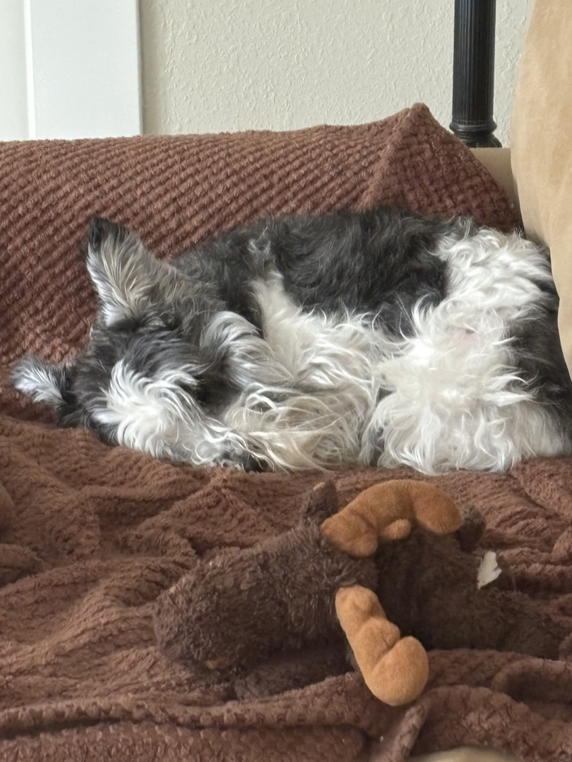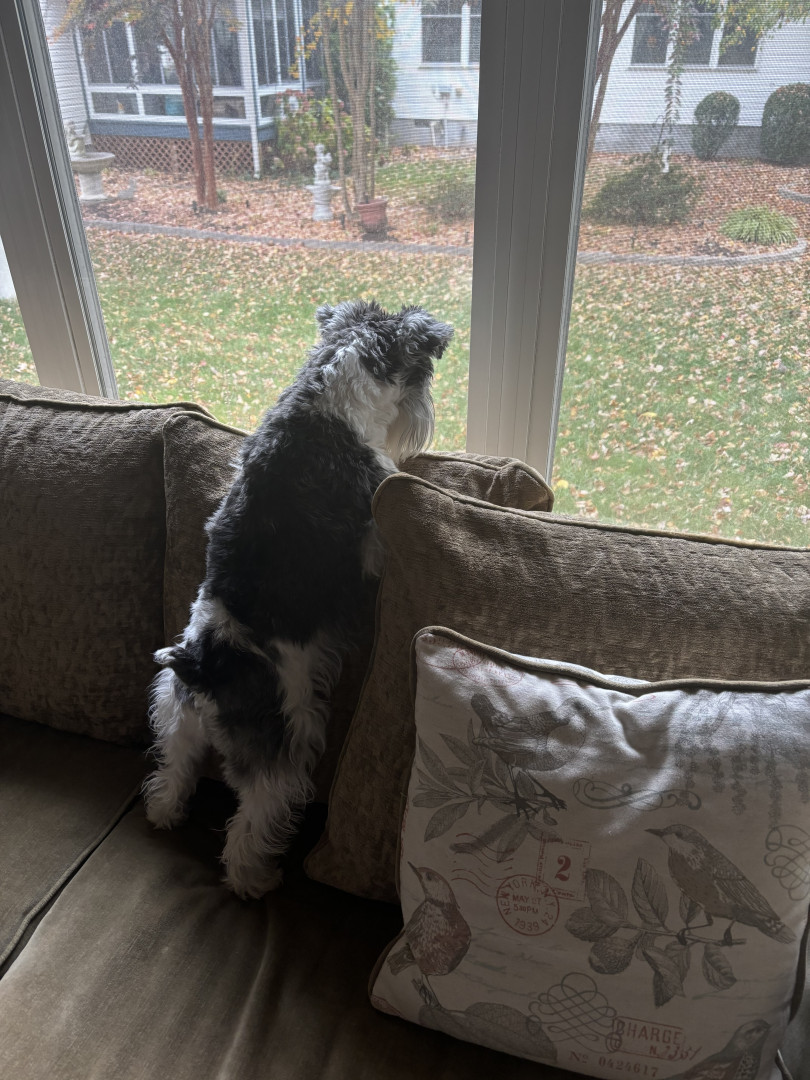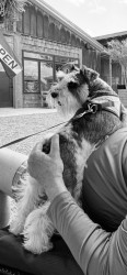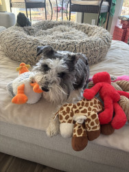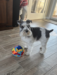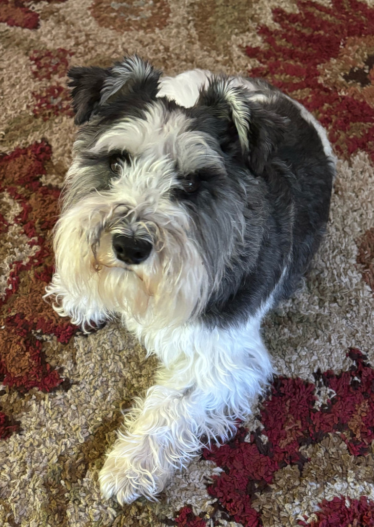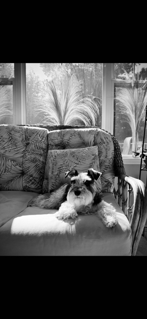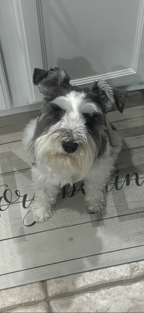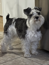 Lucy is a 3-year-old Parti Schnauzer. She is incredibly smart and loving and is a constant shadowing presence within the home. Never alone.