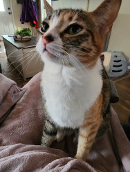 Her most unique quality is how she wakes me up EVERY MORNING at 6:45 am she gets on my chest and meows so quietly and licks my nose she puts her 2 paws on each side of my face. She has done this since day one