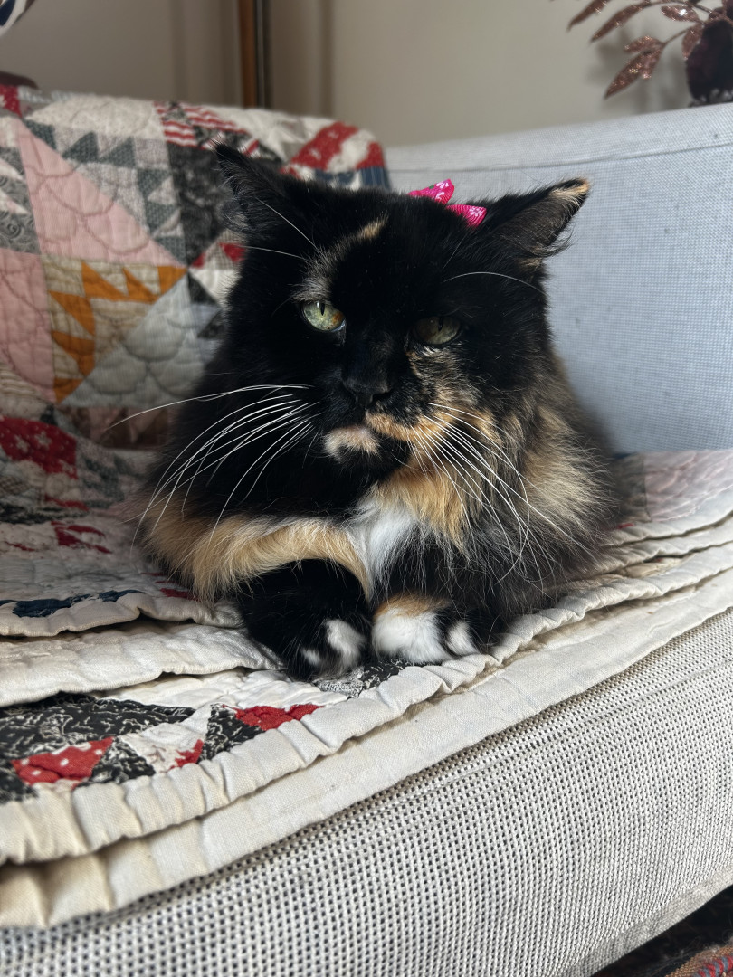 Lucy is a fun and loving 16year old cat. She likes to play with her toys and have lots of cuddles.