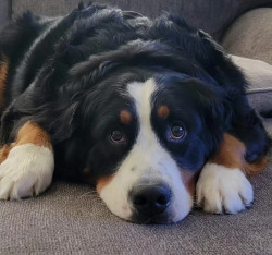 Lucy she is a 5 yr old Bernese mountain dog she is my emotional support , snack stealer, hug seeker, love of my life!