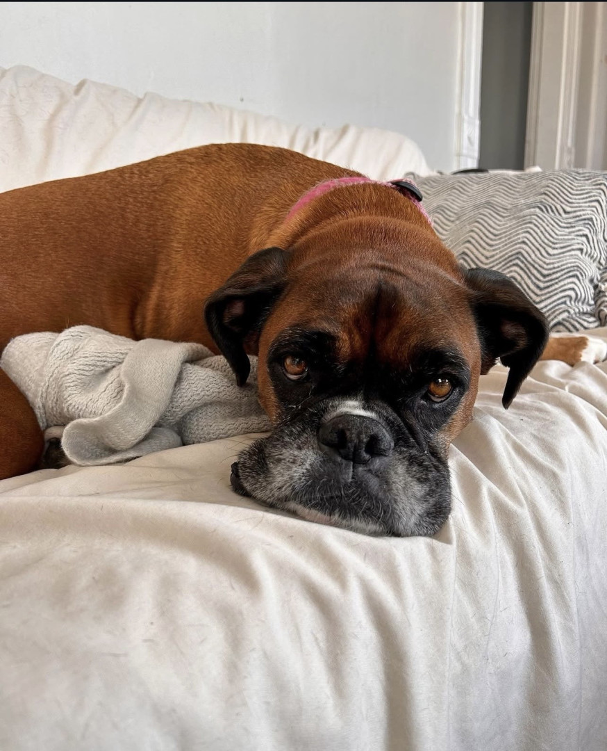 Her nonchalant chill mood for a boxer. I’ve always been so proud of her around other dogs or people. She’s so loving and good natured. She gets along with everyone, even cats.