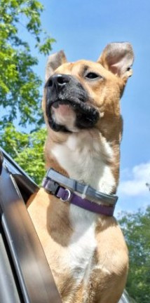 Lucy loves to play fetch by herself, she will toss her toy up in the air and then jump an grab it. She's very intelligent and loyal.