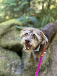 Luigi is a rescue. He is approximately 4 years old and I say his breed is scrapadoodle. Loves hunting squirrels and hiking.