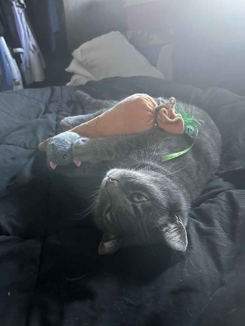 Learn MoreLukas favorite toy is his catnip carrot He’ll play with it than pass out while still holding his carrot