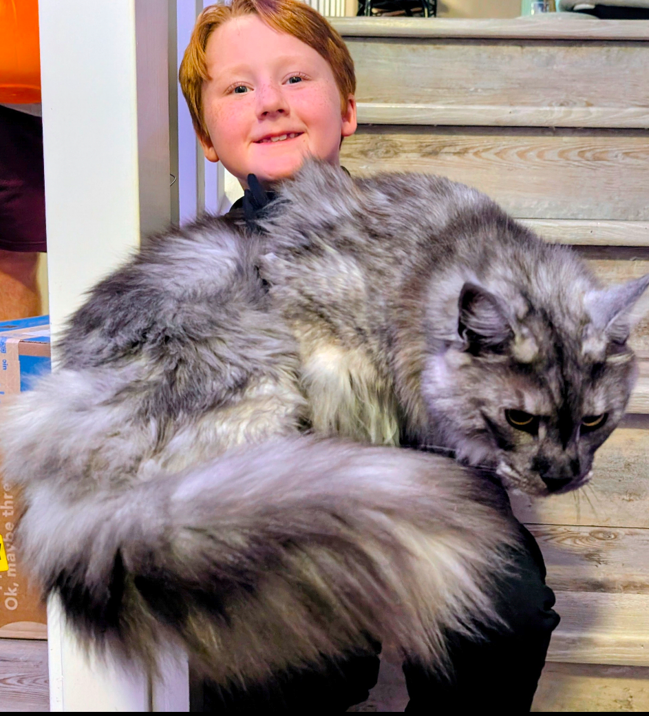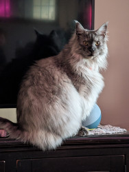 Lukas is a Maine Coon, but acts like he's part cat, part dog, and maybe part human 😁 He's social, loving , so curious and a cuddly lap cat.