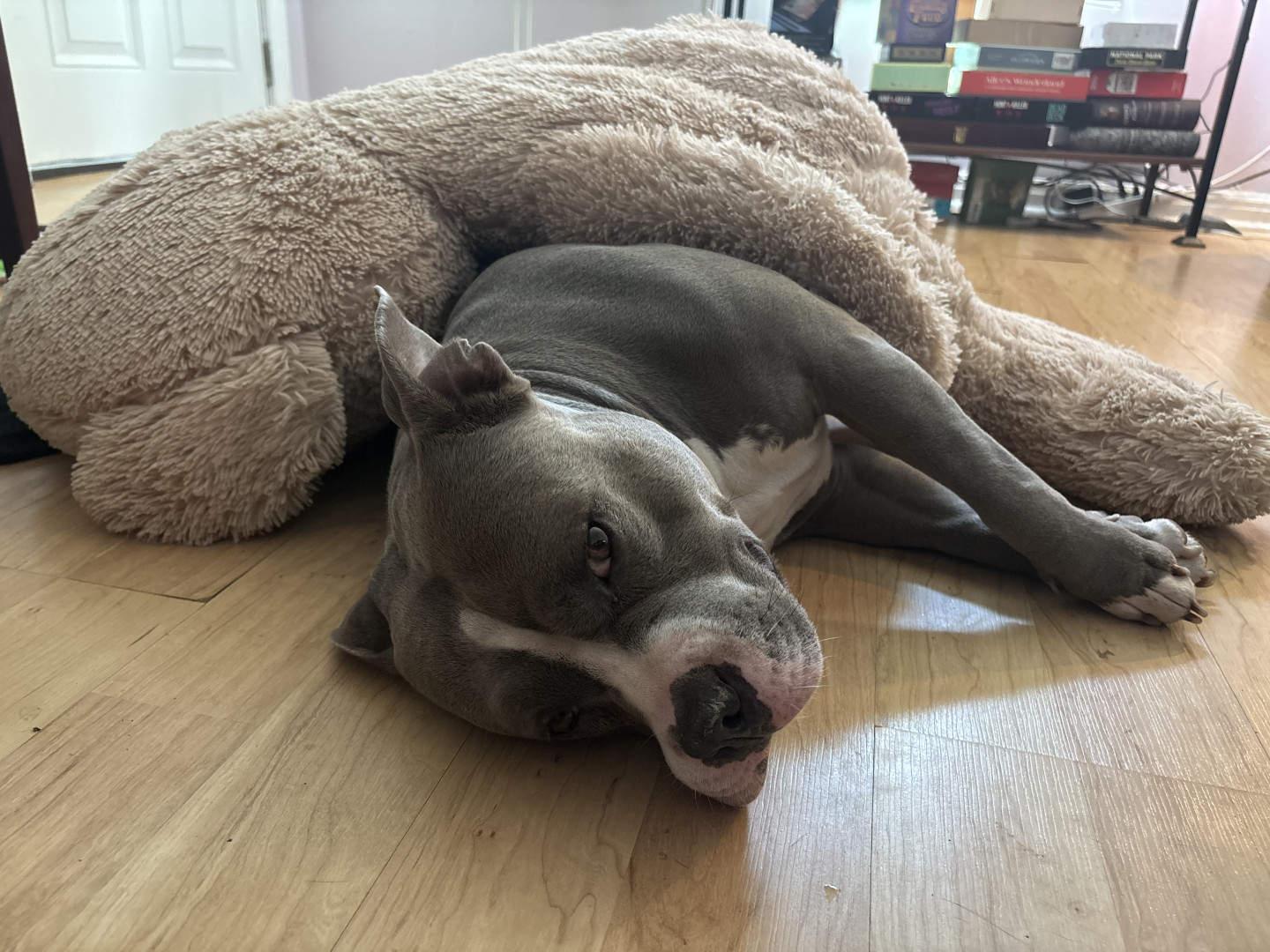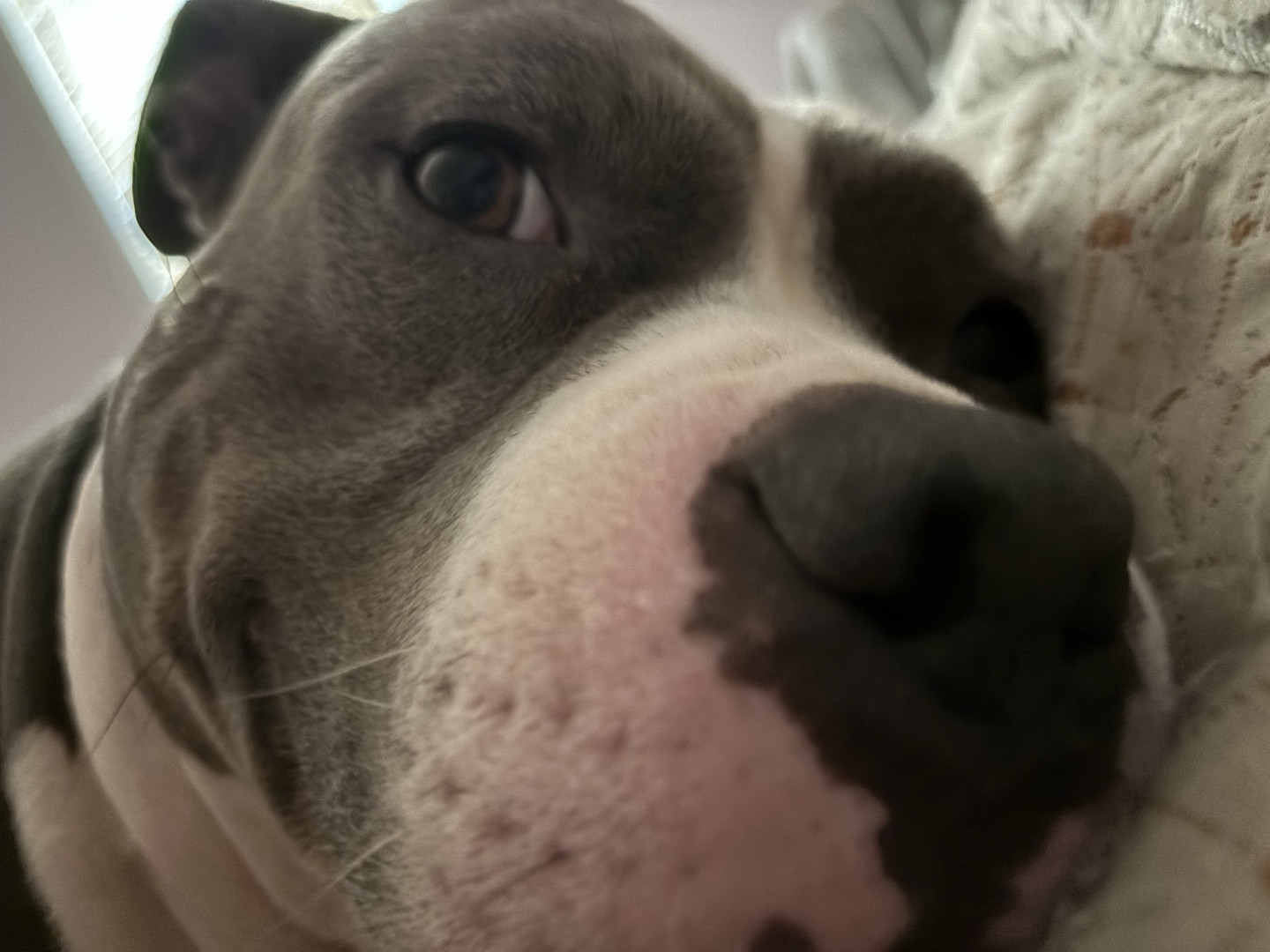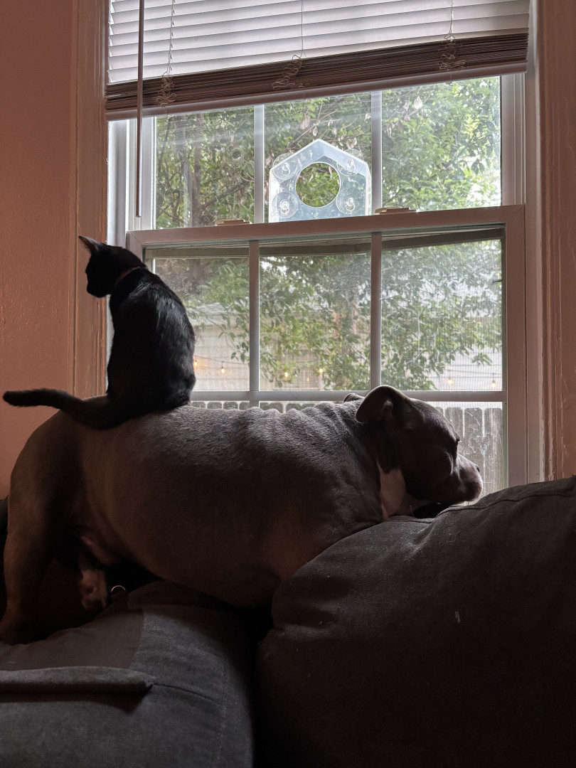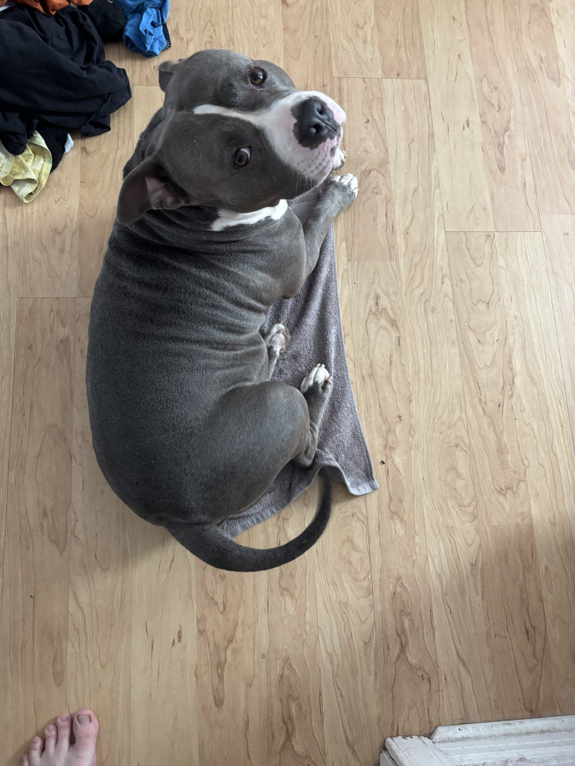 This heart nose pitty loves so much an he also loves his two kitties he rescued in a flood. He loves hard an is the sweetest thing in the wo