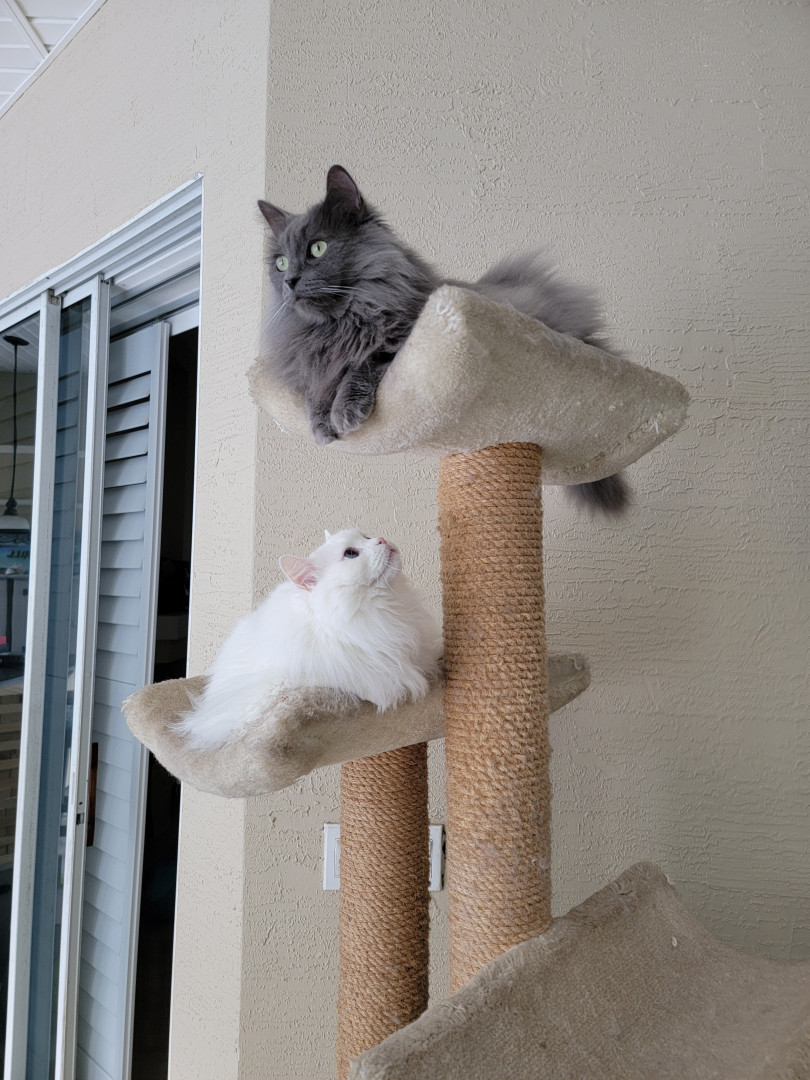Luke has a silly meow and loves to talk. Luke loves to run in a room screaming at the top of his lungs and flip up side down.