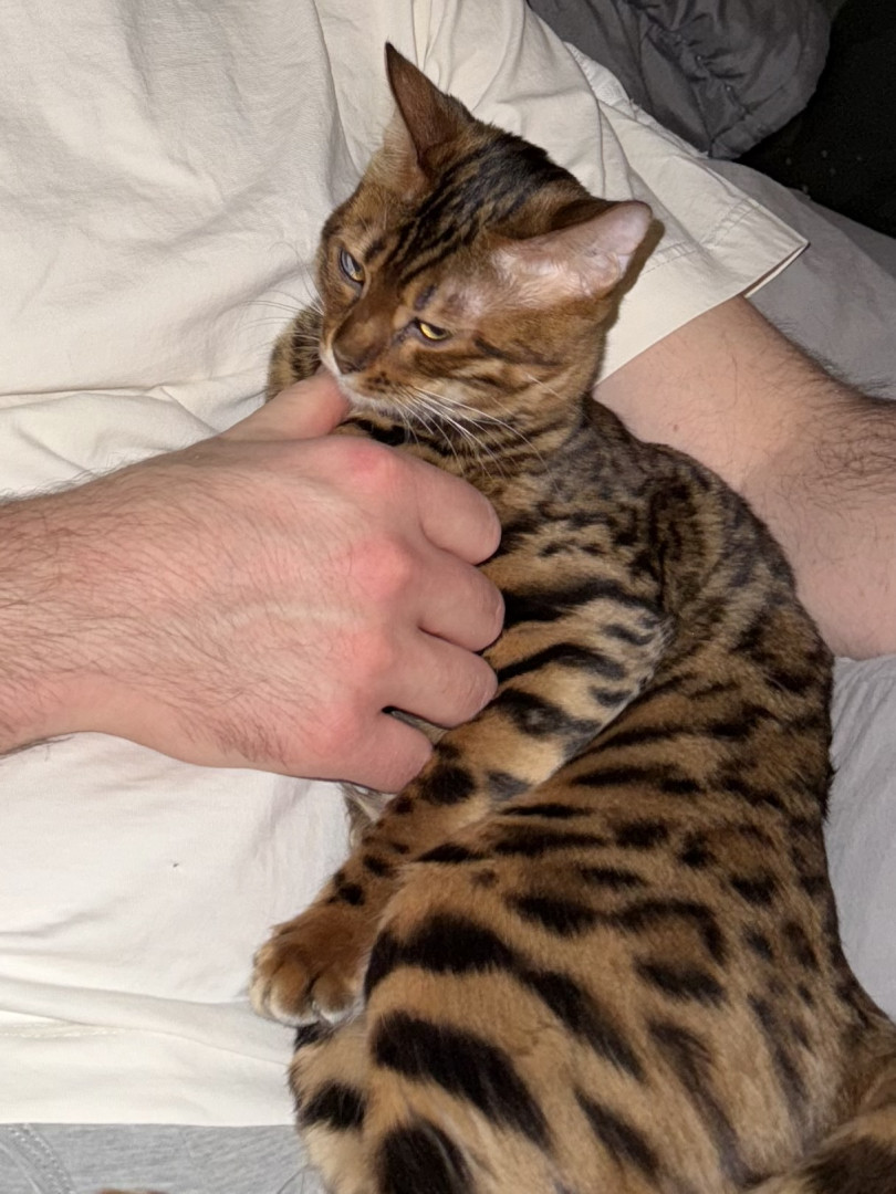 Wild nature cat, she’s smart and playful, super touchy and tender, always active and has her unique character. Sometimes acts like a dog lol