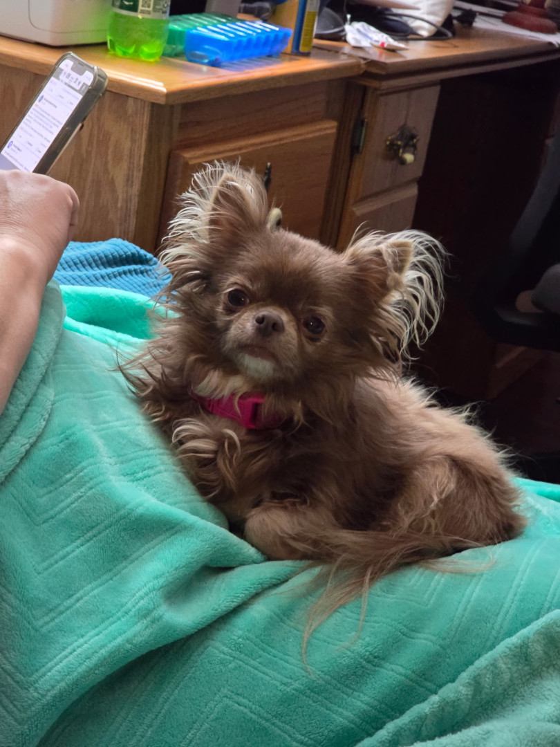 Lulu is a 3 year old long haired chihuahua. She is loving and affectionate dog. She loves giving kisses and getting her belly tinned
