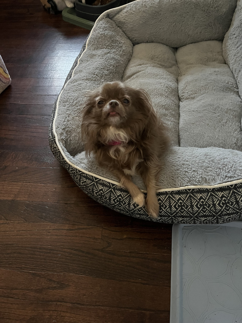 Lulu is very quiet and a loving dog. She loves to sit or lay on your chest when u are in a chair or bed. She is a very calm and amazing dog.