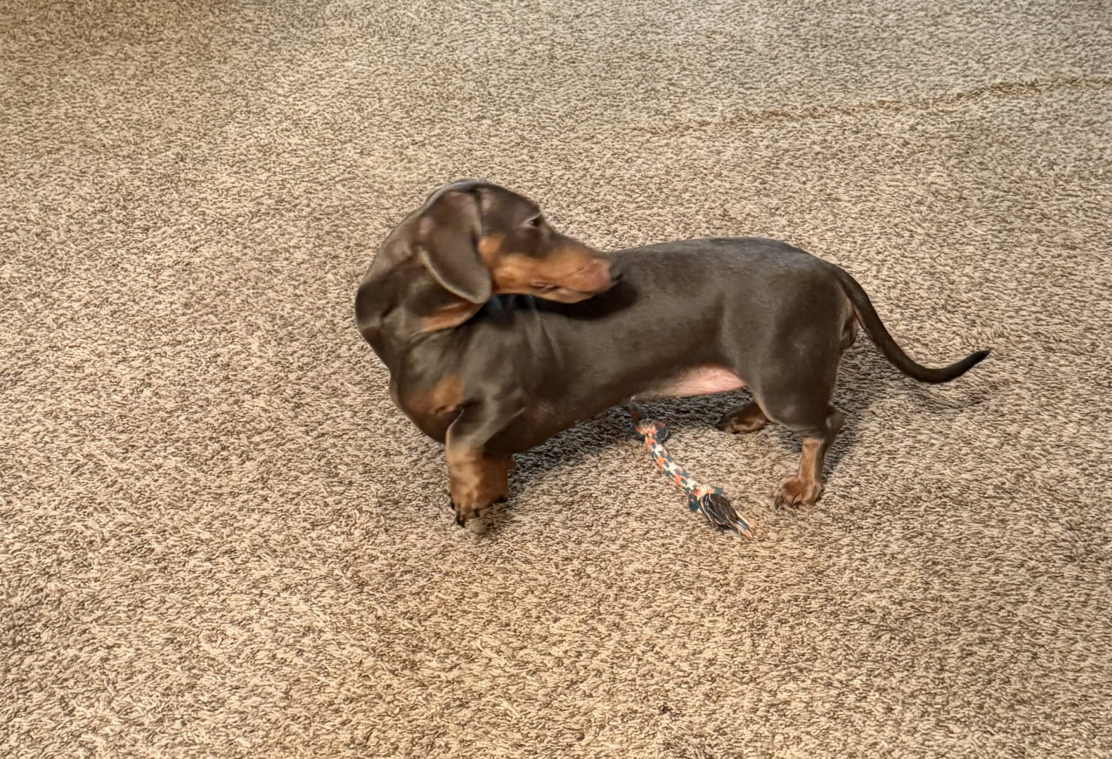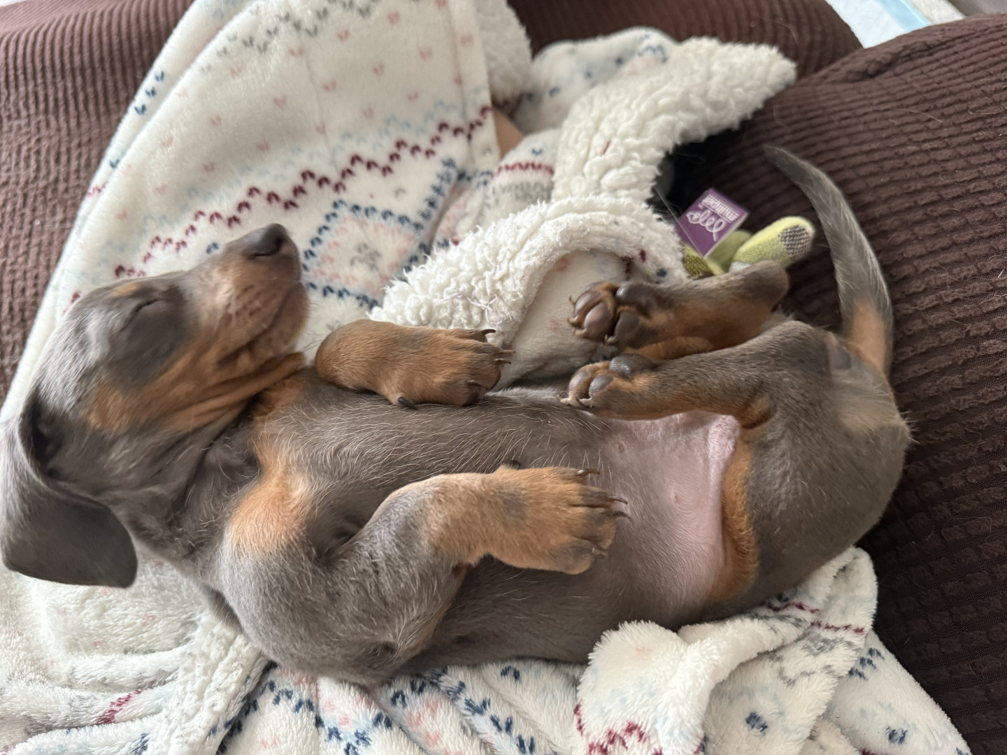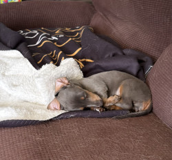 Lulu loves playing with her toys and wrestling with her sister Dobby. She’s full of energy and thinks she’s the boss of the house.