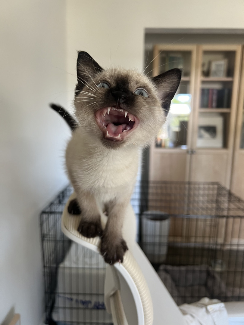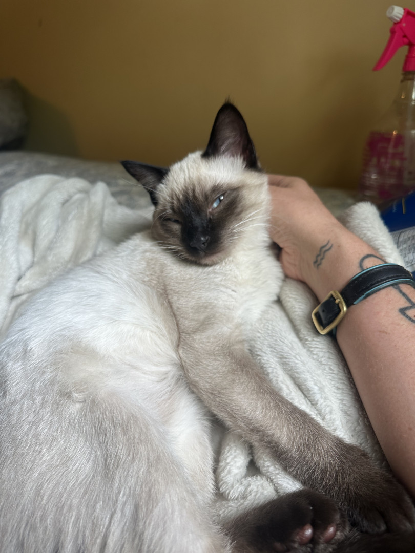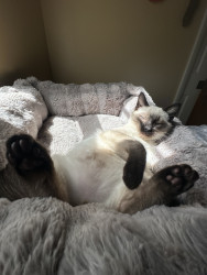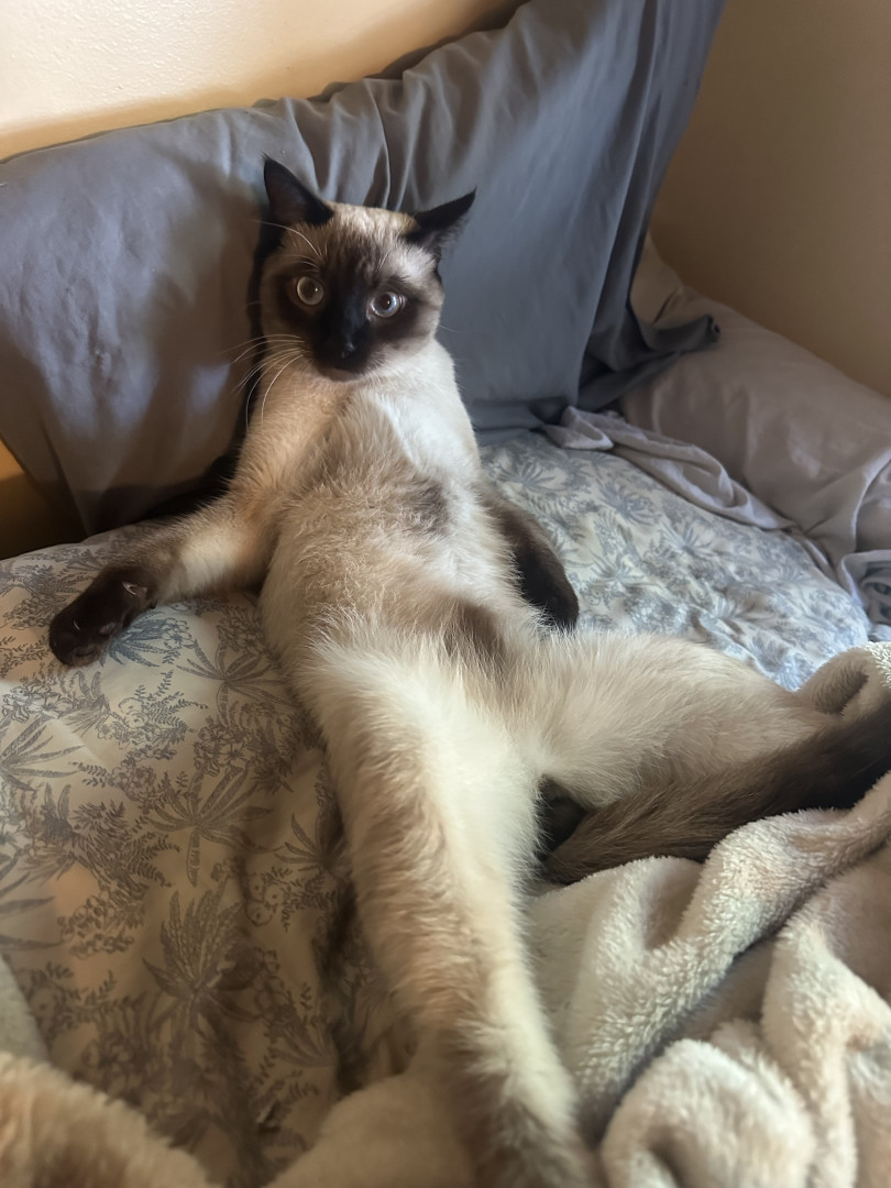 LuLu is our Siamese baby boy with a heart of gold. He's either parkouring off our foreheads or hogging the whole bed like he pays the bills😆