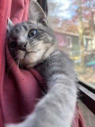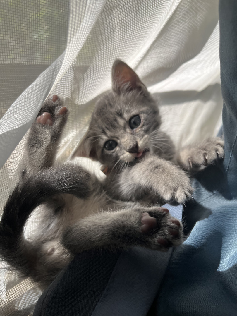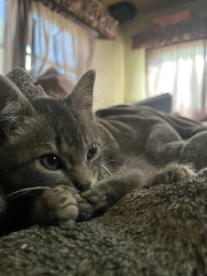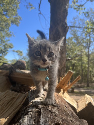 He is the biggest explorer you will see, He spent his whole kitten hood playing around the wood piles we have outside and he is just so curious about everything, he has the sweetest personality you would ever see in a kitten, he just always makes the day better when you are with him.