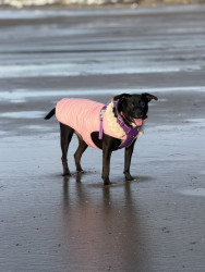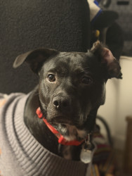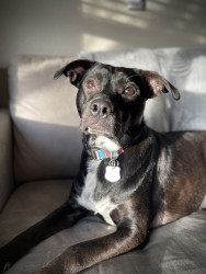 Luna most unique quality is how calming she is, a gentle soul dog. When having a bad day, having Luna around makes everything better, her aura is relaxing to be around. In no way Luna comes off as aggressive. Luna is the smartest girl, she gives us signals and signs for everything! Most dogs hate their picture being taken and wearing clothes. Not Luna she is the most photogenic and chilliest girl when it comes to that! Luna loves to dress up and wear a good sweater!