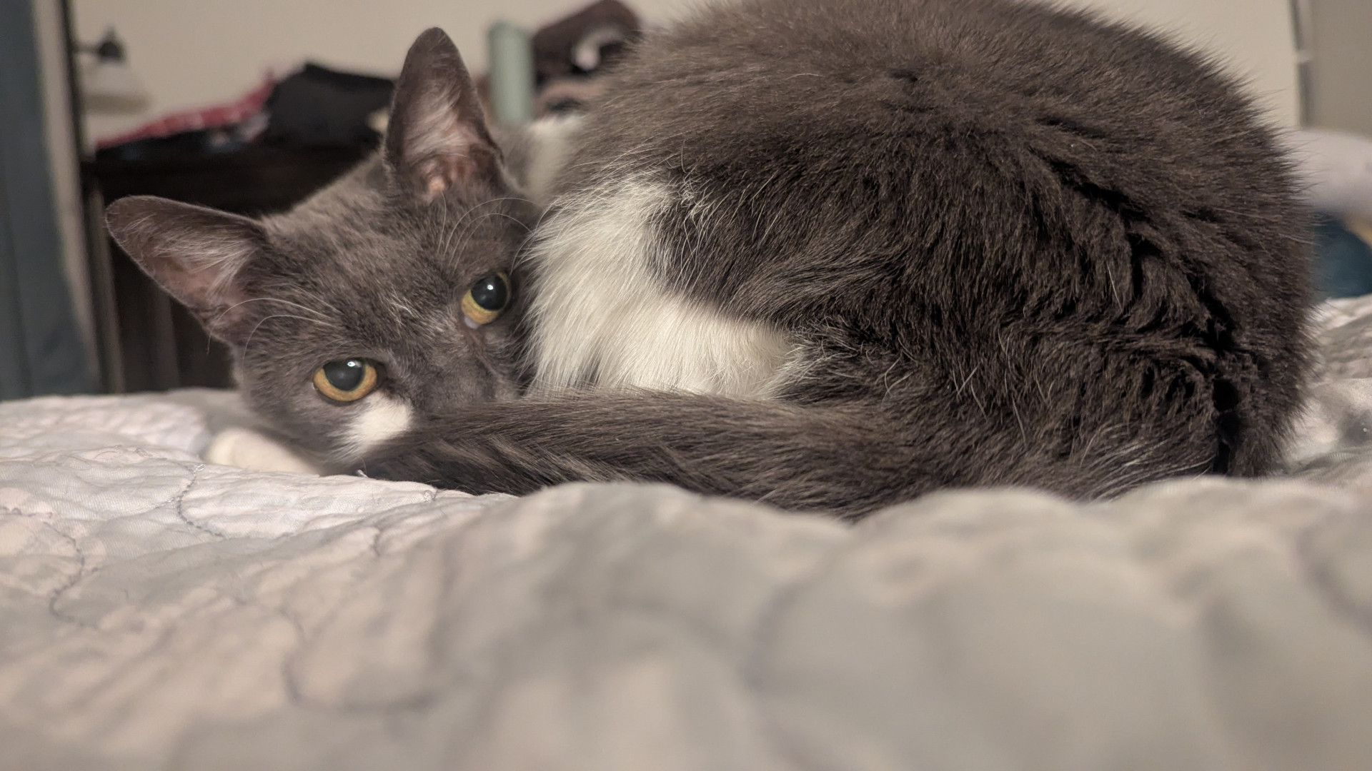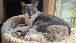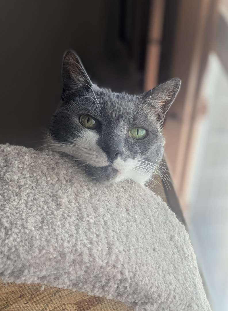 The most unique quality that Luna possesses is her keen attention to how her humans are feeling. I'd call this compassion. Whenever we are sick, she seems to know and makes it a point to lie near or on us. She can be skittish at times, but most often she is calm and sweet, and will give you a tender lick on the hand.