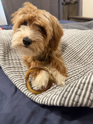 Luna is an 8-lb micro Goldendoodle who’s full of love and playfulness.