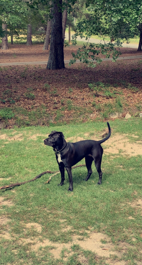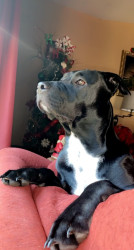 Luna is Lab/ Pit mixed but as you can see she’s mostly Lab. She’s 5 years old and a deep black color.