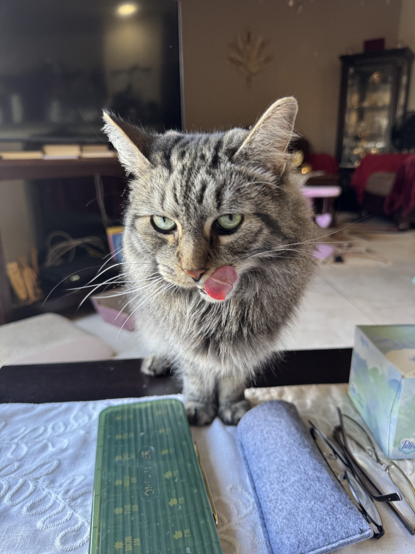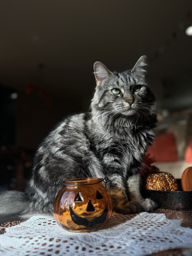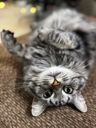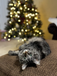 She surprisingly is not food driven yet deceivingly floofy. Some may assume that she's chonky, but she's entirely all fur and weighs a light 7.8 pounds. She also has the temperament of a dog in a cats body. She only cuddles with her mom (me), knows a few tricks (if she feels like listening) and will wait at the door till I get home every time.
