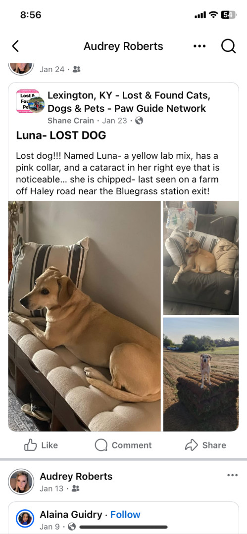 Our beloved Luna is so special she is a lab mixed and is the friendliest and loving his dog that you will ever meet.