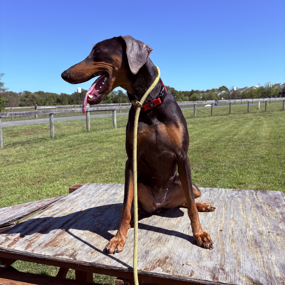 Luna is a blue Doberman who’s 2 years old. She is the best girl ever and loves her mom and dad.